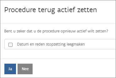 2. Klik op de actie Procedure opnieuw actief zetten via
