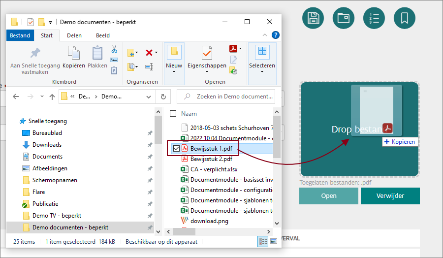 Hoe voeg ik een bewijsstuk toe via een andere actie oa. in een procedure?