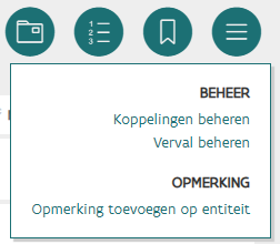 1. Navigeer naar het detail van het bewijsstuk via de referte en klik op de actie Koppelingen beheren via
