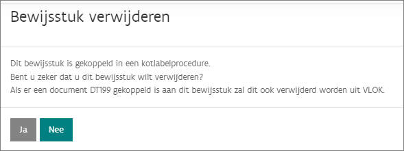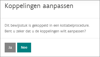 Als het bewijsstuk is gekoppeld in een kotlabelprocedure, zal VLOK de gebruiker verwittigen en bevestiging vragen: