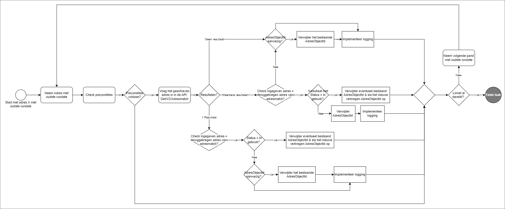 VLOK controleert alle adressen van panden/entiteiten Een entiteit is een deel van een pand. Er zijn 3 entiteitstypes: niet-woonfunctie (NWF), een niet-zelfstandige woning (NZW) en een zelfstandige woning (ZW). Zie voor uitgebreide definitie' Hoe voeg ik een nieuwe entiteit toe?'/personen met een AdresID die geen oud adres zijn of voorheen gekend als en past volgende logica toe:
