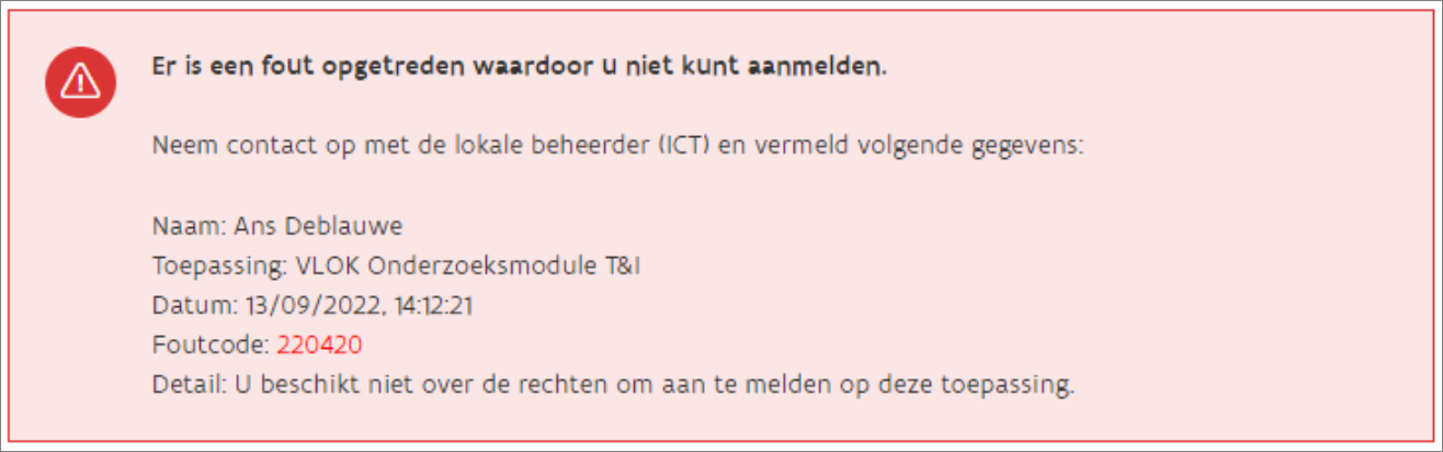 Een gebruiker die aanmeldt en nog geen rechten heeft gekregen van zijn lokale beheerder in IDM krijgt volgend bericht: