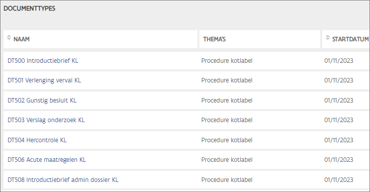 Onder het nieuwe thema Procedure kotlabel vindt u volgende documenttypes om manueel aan te maken of op te laden: