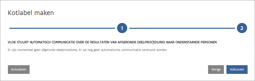 Als een aanvraag uit het formulierenloket is gekoppeld opent VLOK een wizard met twee stappen: