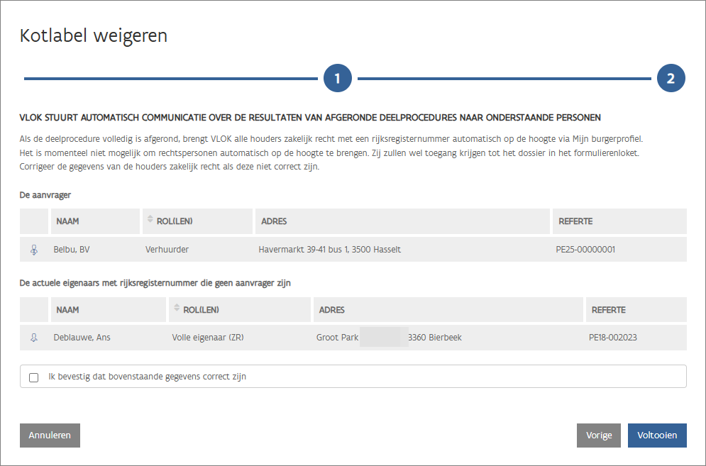 Bevestig uiteindelijk dat de gegevens correct zijn en klik op 'Voltooien'.
