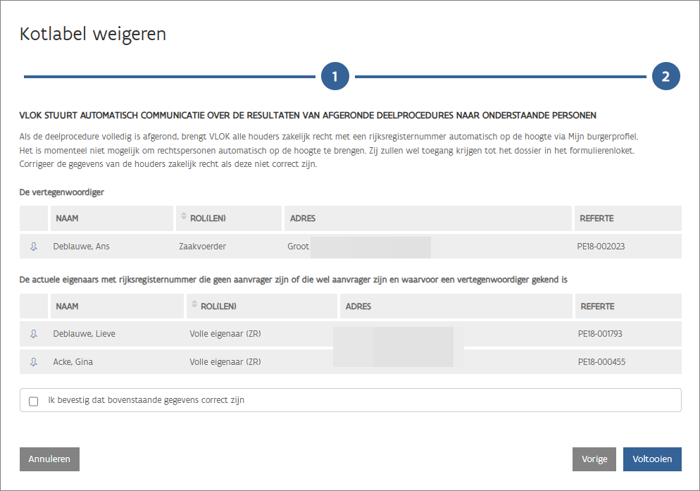 Zie hierboven de voorwaarden om een kotlabel te kunnen maken of weigeren.