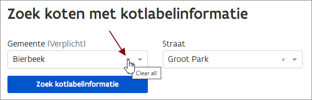 Als u uw gemeente niet kunt selecteren wil dit zeggen dat voor deze gemeente geen kotlabelinformatie beschikbaar is.