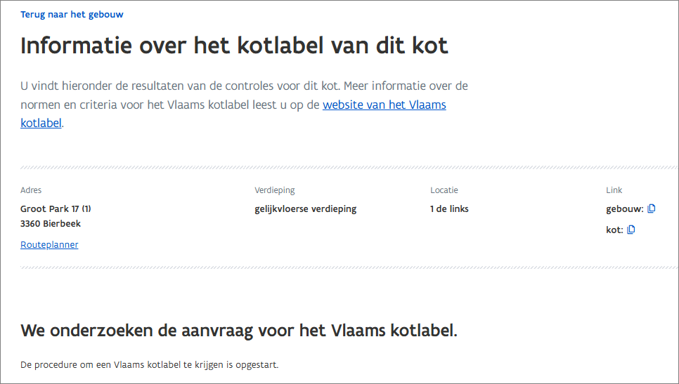 Als u de kotlabelinformatie van uw kot wil delen bijvoorbeeld via een advertentie of een kotenwebsite, kunt u de unieke link gebruiken: