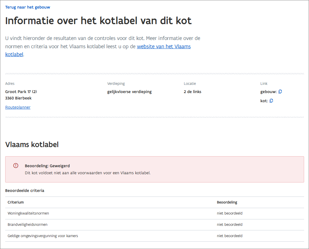 Als een kotlabel is vervallen, is de informatie over het kot niet langer zichtbaar.