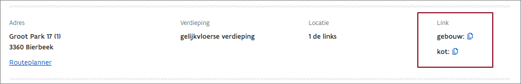 Kopieer de unieke linkvoor uw kot of gebouw via het kopieer-icoon: