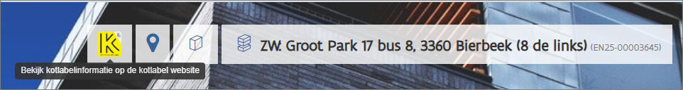 Navigeren naar de unieke linken vande kotlabelwebsite kanvanuit VLOK snel via het kotlabelicoon naast de titel van het goed: