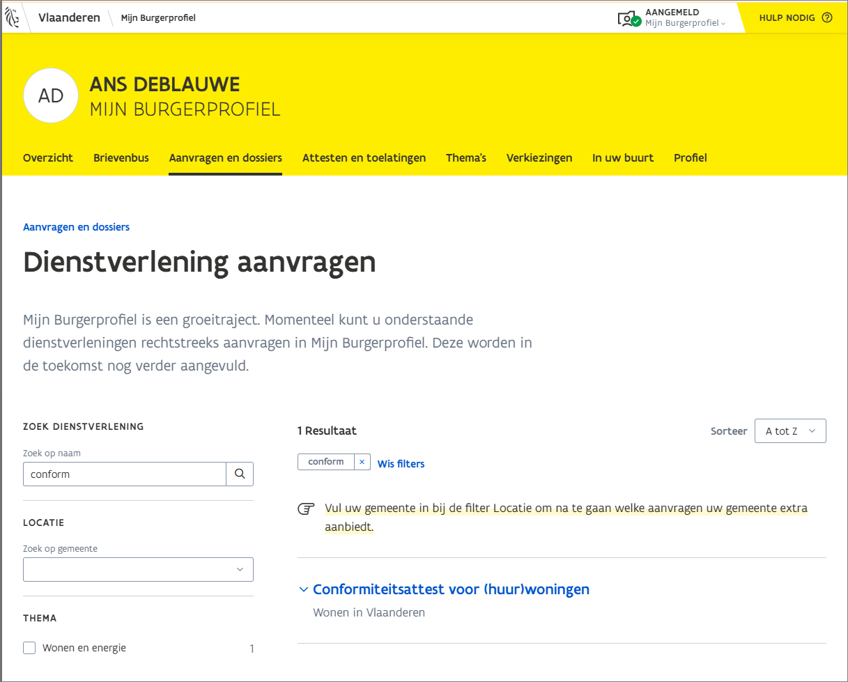 2. Via Mijn burgerprofiel (burgers) > Aanvragen en dossiers