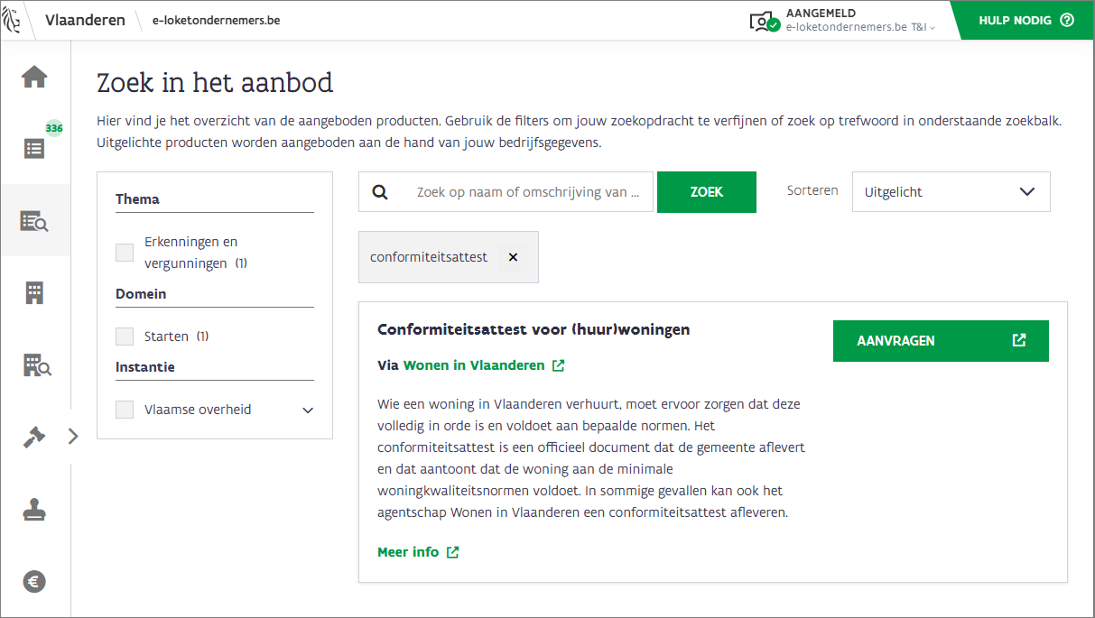 3. Via het e-loketondernemers (onderneming) > Zoek in het aanbod