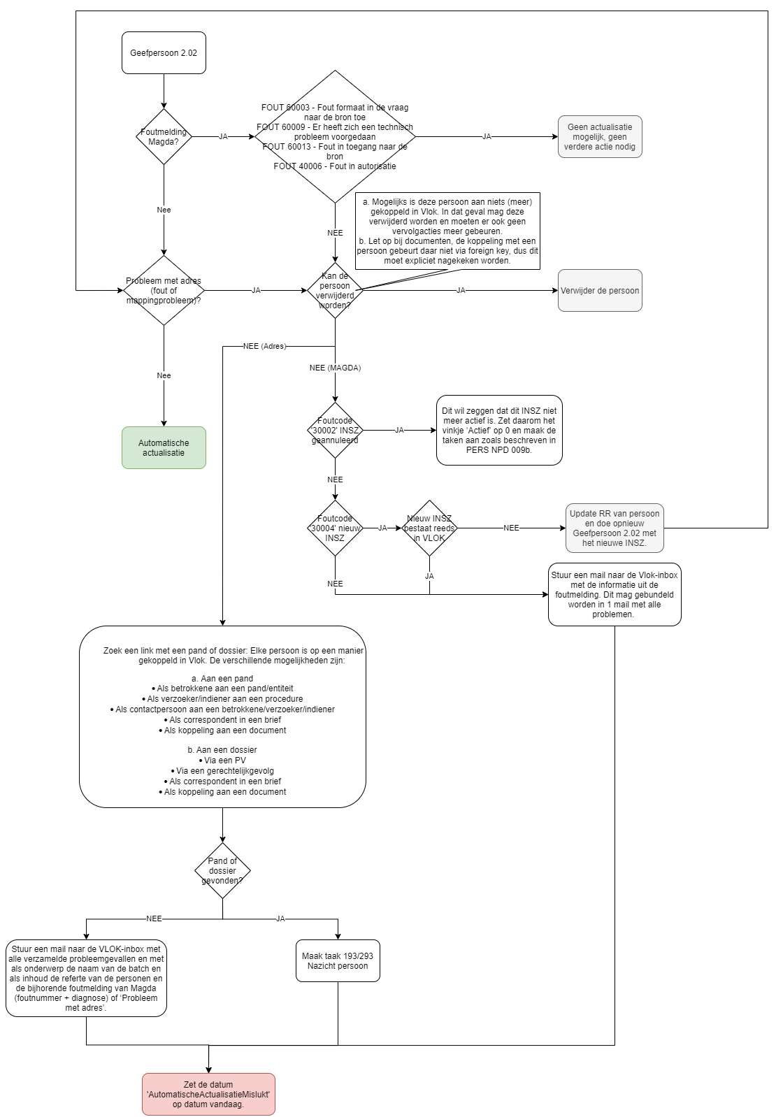 Sommige rijksregisternummers kan VLOK niet automatisch actualiseren (bv adressen die niet correct gemapt kunnen worden, ongeldige structuur, nieuwe INSZ, etc).