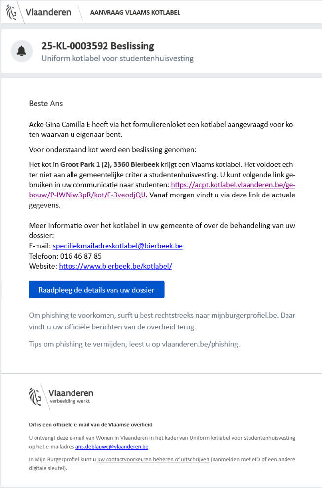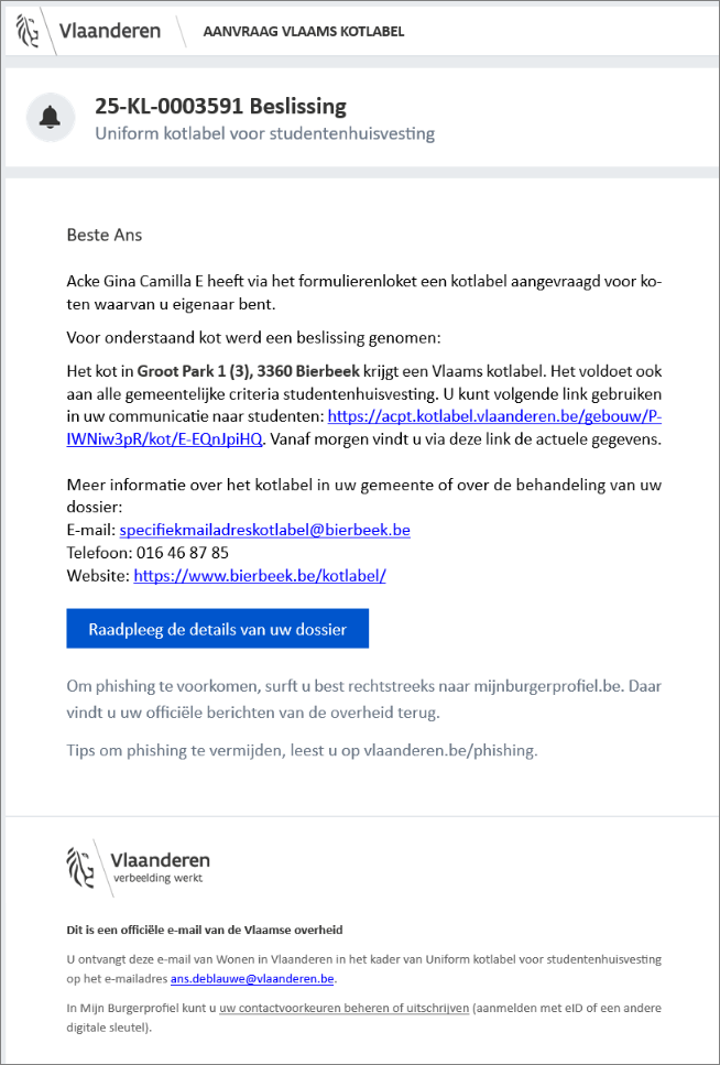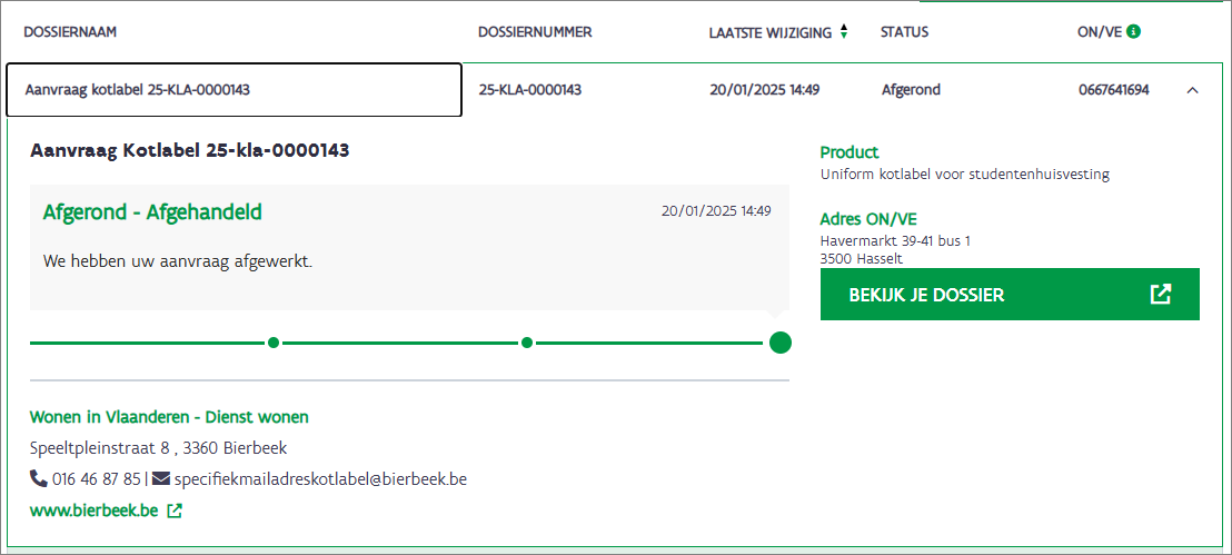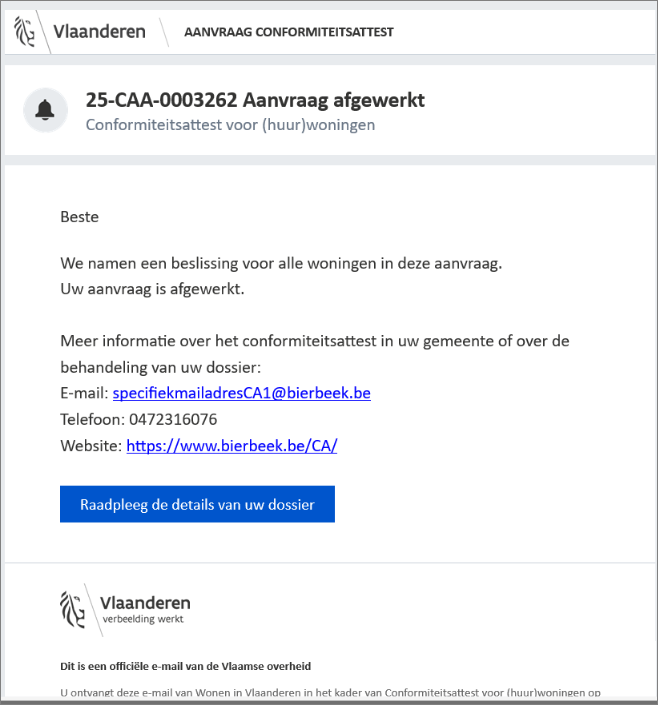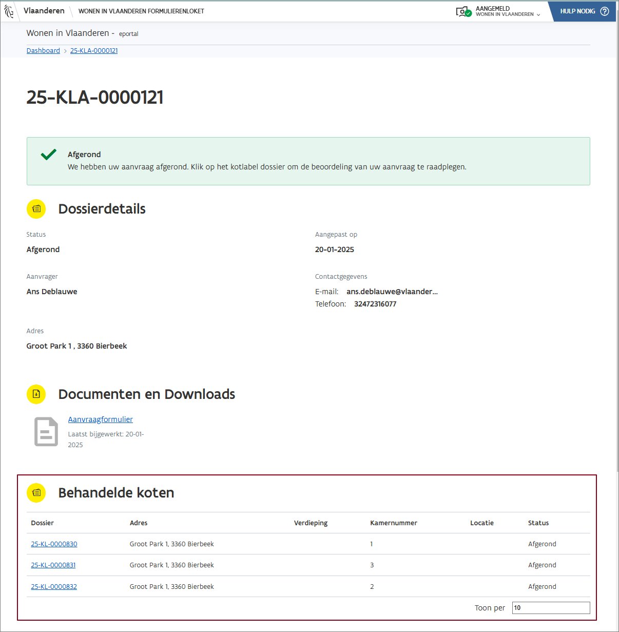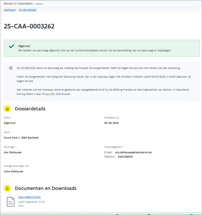 Deze informatie kan de aanvrager ook terugvinden in zijn dossier in het Wonen in Vlaanderen formulierenloket.