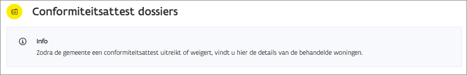 De details van een woning zijn pas zichtbaar nadat de dossierbehandelaar een conformiteitsattest aanmaakt of weigert voor het kot.