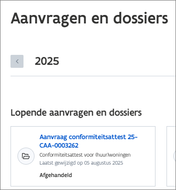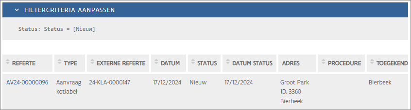 Open het detail van de aanvraag via de referte op het Aanvragenoverzicht