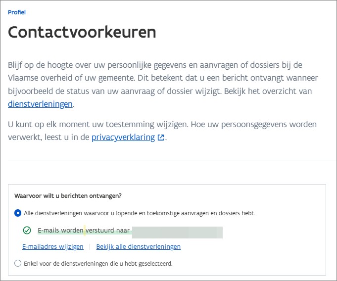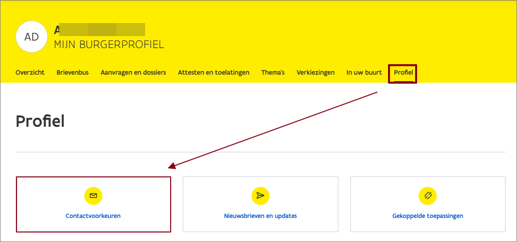 Navigeer naar Mijn burgerprofiel > Profiel > Contactvoorkeuren