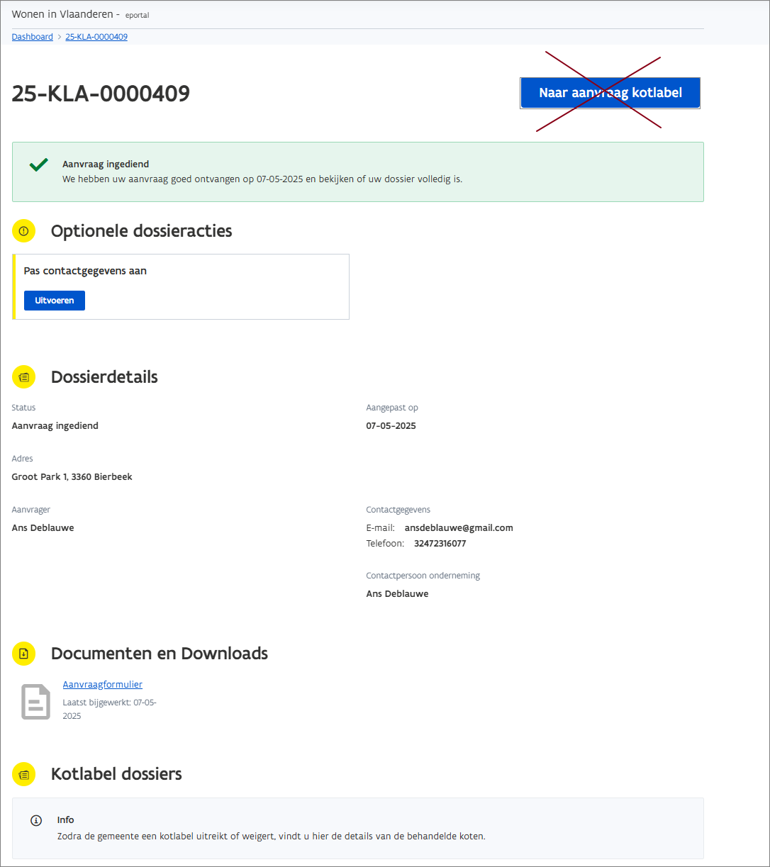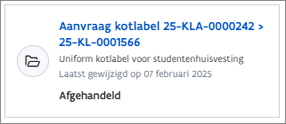 Procedure kotlabel: een kotlabel aanmaakt of weigert in een deelprocedure die een eindstatus bereikt. Zie Hoe maak of weiger ik een kotlabel en eventueel het bewijsstuk 'Gemeentelijke criteria studentenhuisvesting'?