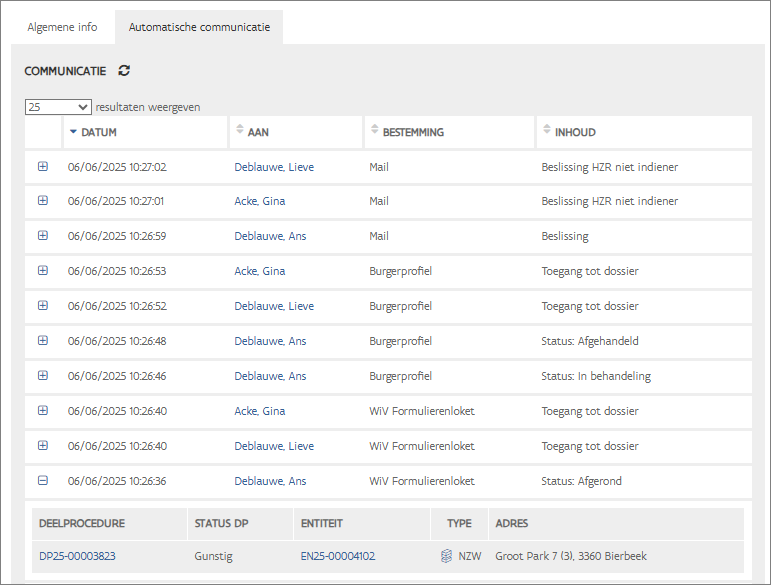 toegang tot de dossiers van zodra een beslissing per entiteit Een entiteit is een deel van een pand. Er zijn 3 entiteitstypes: niet-woonfunctie (NWF), een niet-zelfstandige woning (NZW) en een zelfstandige woning (ZW). Zie voor uitgebreide definitie' Hoe voeg ik een nieuwe entiteit toe?' maar geen toegang tot de overkoepelende aanvraag. Deze toegang is zowel beschikbaar voor natuurlijke als rechtspersonen.