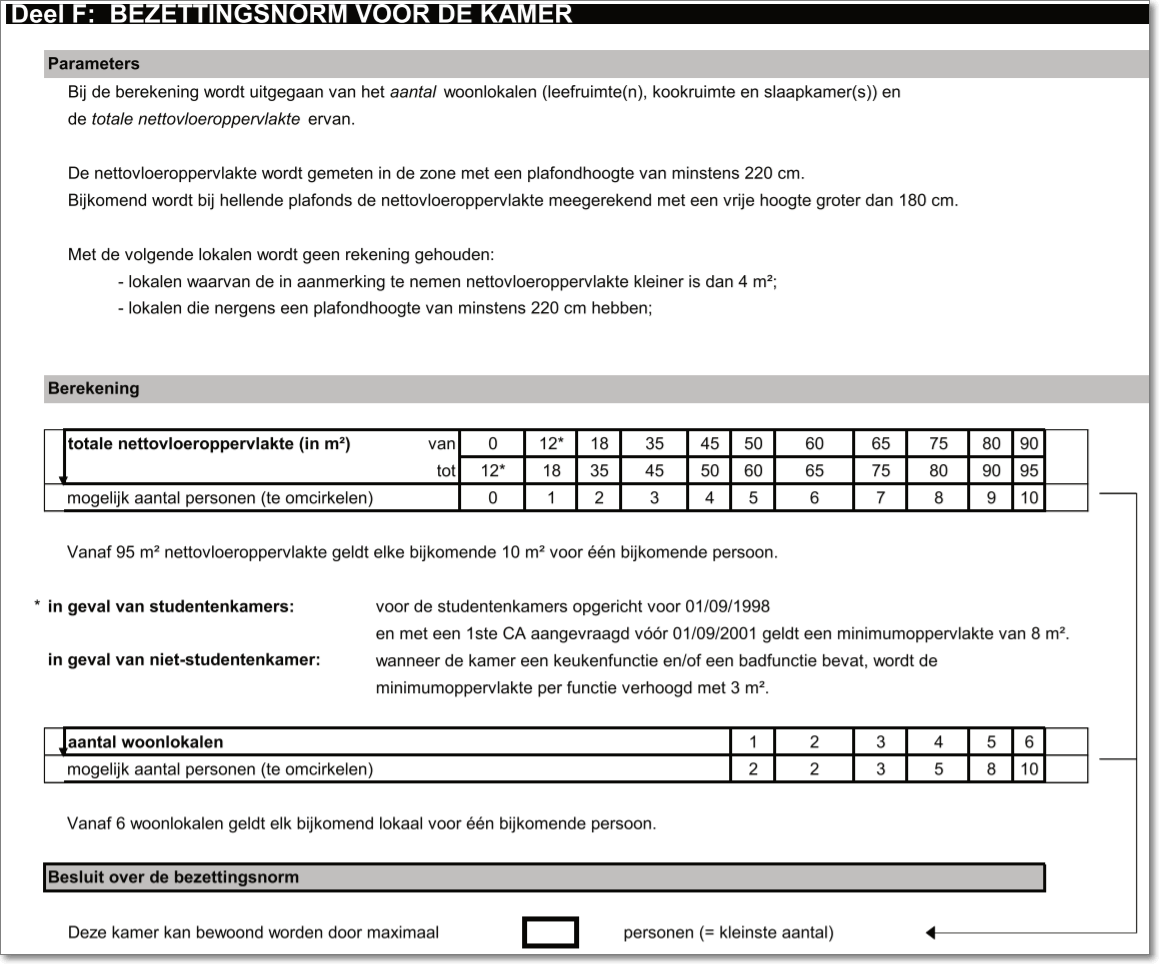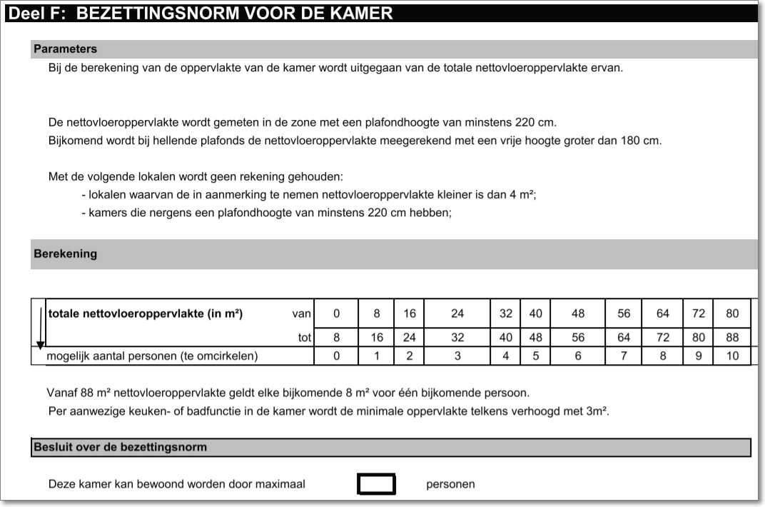 Voor overbewoning is een inschatting van de woningcontroleur nodig of het overschrijden van de bezettingsnorm al dan niet een veiligheids- en gezondheidsrisico inhoudt of mensonwaardige levensomstandigheden.
