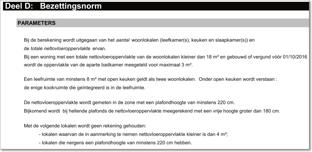 Vanaf februari 2025 laat VLOK de bezettingsnorm van deel D of deel F leeg indien volgende voorwaarden samen zijn voldaan: geen toegang verkregen tot de entiteitnetto vloeroppervlakte is leegaantal woonlokalen is leeg(klik om te vergroten)