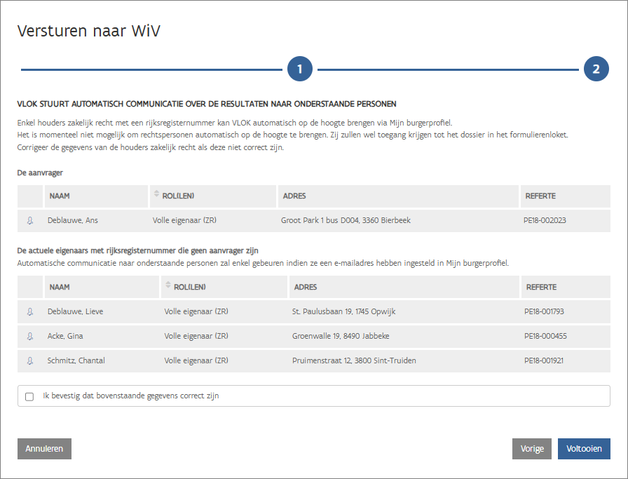 Naar de aanvrager en HZR houder(s) zakelijk recht. Volgende rollen beschouwt VLOK als een houder zakelijk recht: volle eigenaar, vruchtgebruiker, opstalhouder, erfpachter. / niet aanvrager.