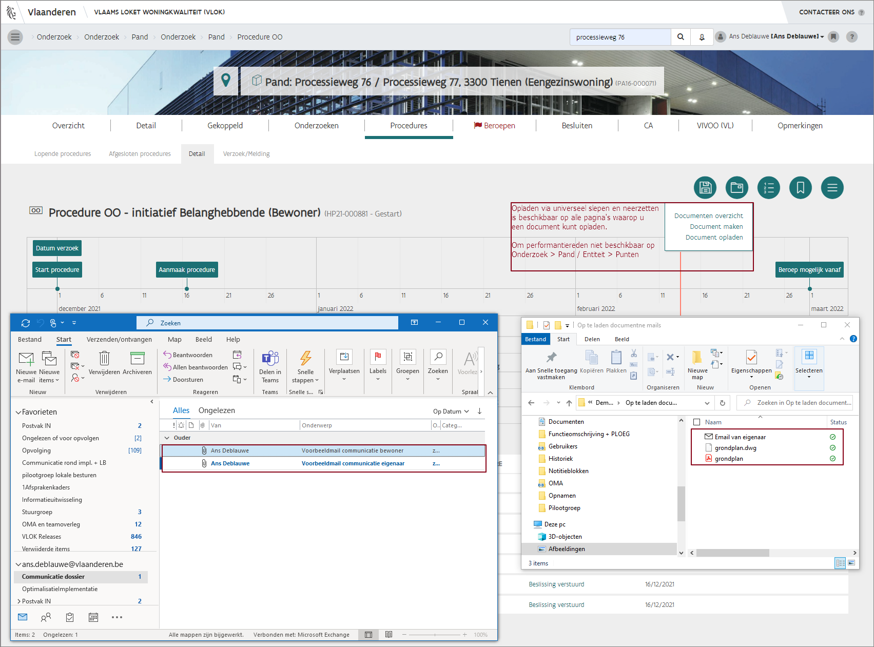 • Navigeer naar het gewenste data-object (procedure/onderzoek/persoon/pand/entiteit/...) waaraan u het op te laden bestand wil koppelen.