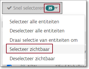 - U kunt slechts 25 verslagen tegelijkertijd ondertekenen. Om vlot 25 verslagen te kunnen selecteren, kunt u enkel de zichtbare entiteiten selecteren en is het aantal zichtbare verslagen in de lijst standaard 25 ipv 10. VLOK toont in de lijst enkel de entiteiten waarvan de verslagen nog niet zijn ondertekend.