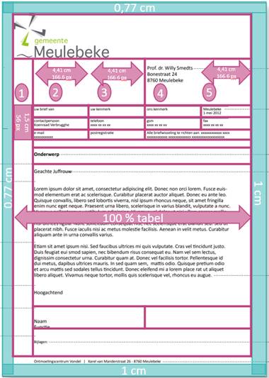 Indien de breedte van de kolommen verschilt zet u de breedte in px (pixels). U zet cm om naar pixels via de verhouding 1 cm = 37,8 px. Gebruik de eenhedenomrekenmachine voor snelle omzetting.