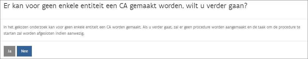 Een CA op basis van een onderzoek in de waarschuwingsprocedure of een procedure OO maakt u altijd rechtstreeks vanuit de procedure OO. Zie De waarschuwingsprocedure