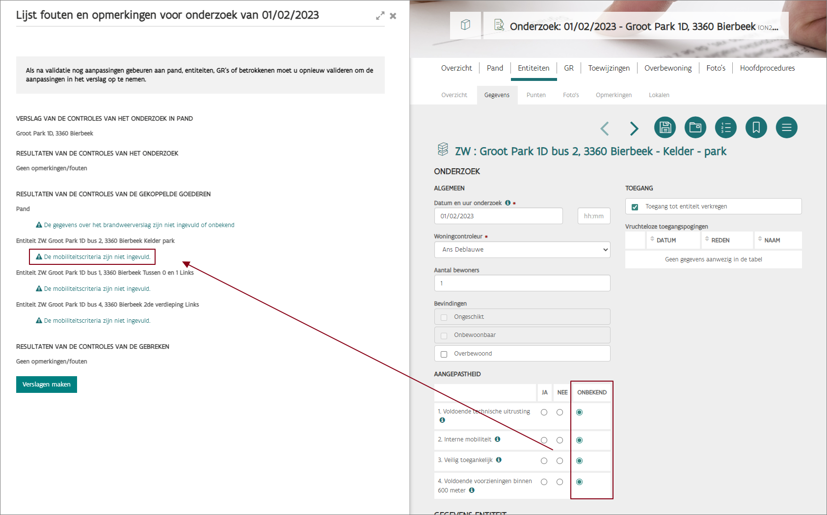 10 | Als alle mobiliteitscriteria voor een entiteit op onbekend staan, waarschuwt VLOK bij de validatie van een onderzoek dat | |