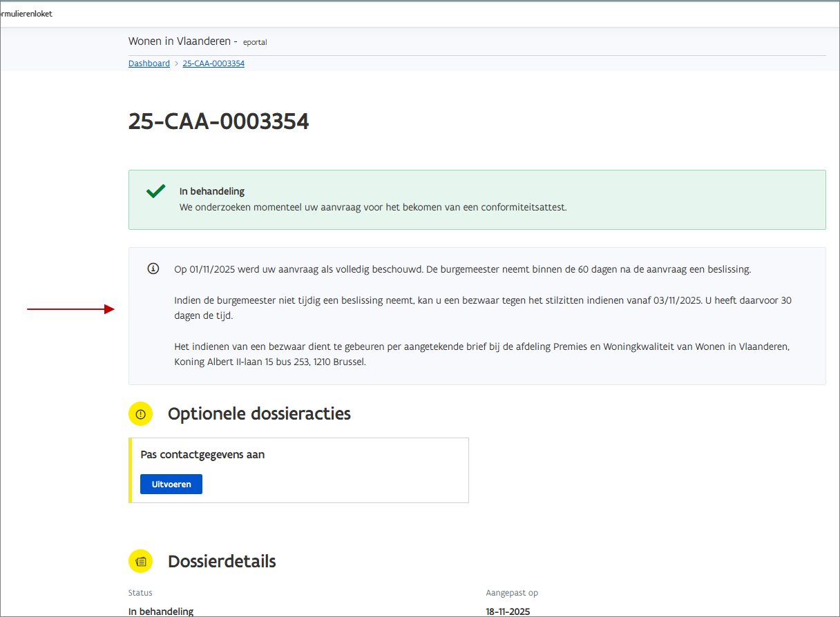 Deze informatie kan de aanvrager ook terugvinden in zijn dossier in het Wonen in Vlaanderen formulierenloket.