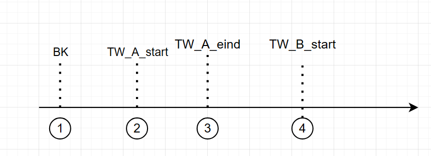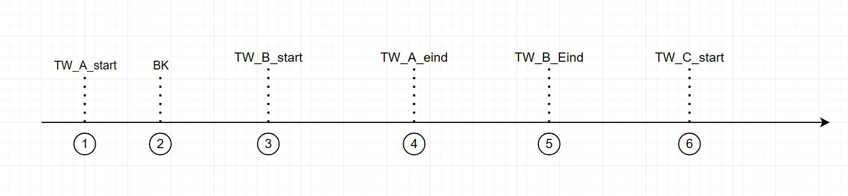 TW_A loopt ten einde. Er is nog een geldige tewerkstelling (TW_B): de startdatum en status blijven ongewijzigd