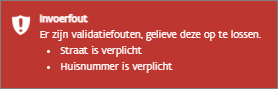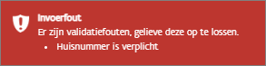 | Fout/Waarschuwing | Controle op verplichte velden (Straat, Huisnummer & Postcode) |