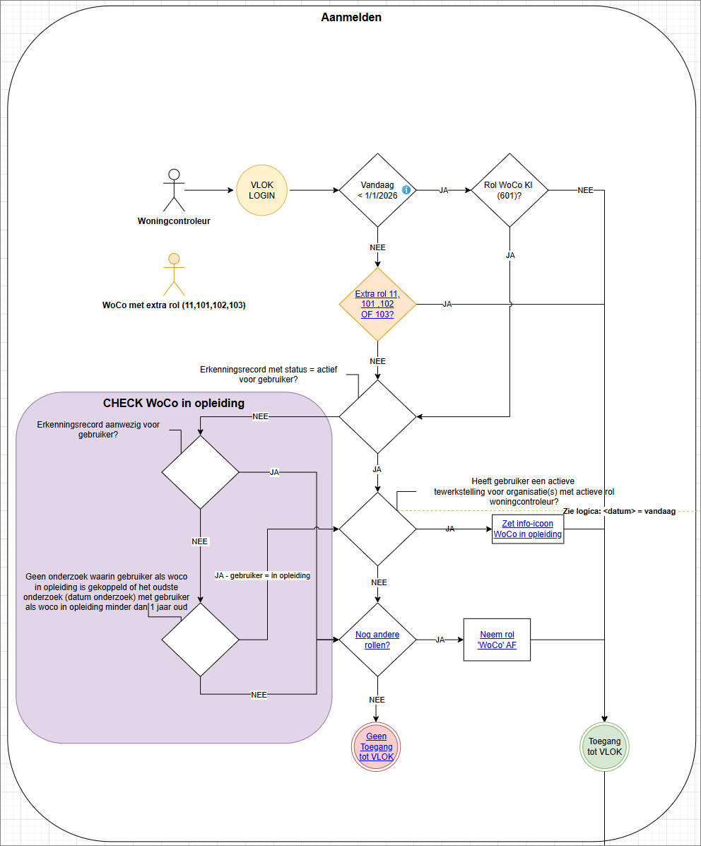 Alhoewel de rol woningcontroleur niet beschikbaar is in VLOK, blijft de rol woningcontroleur wel toegekend via het toegangsbeheer. Zie STAP 3b: Toegang verlenen en gebruikersrollen wijzigen (lokale beheerder) voor gemeenten en Stap 4 - Toegang verlenen aan uw gebruikers (door lokale beheerder) voor keuringsinstellingen.