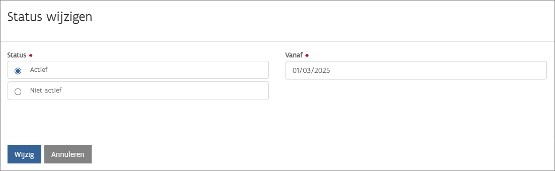 Vink de gewenste status aan en vul de datum in vanaf wanneer de status ingaat: