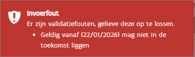 Wijzig op Erkenningen > Detail de Startdatum en sla op. Deze datum mag niet in de toekomst liggen.